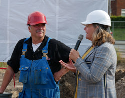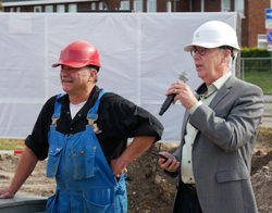 Op maandag 7 oktober ging de bouw van 5 nieuwe woongebouwen aan de Leostraat feestelijk van start. De Leostraat ligt in de Eindhovense wijk Bloemenbuurt Noord. Op het bouwterrein was het een gezellig samenzijn van buurtbewoners en betrokkenen. Er waren mooie toespraken, waarin vooral de samenwerking met de buurt werden benadrukt.