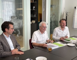 Bestuurders van de betrokken partijen ondertekenden de contracten onder het genot van een stukje taart. En poseerden daarna ook voor de foto.