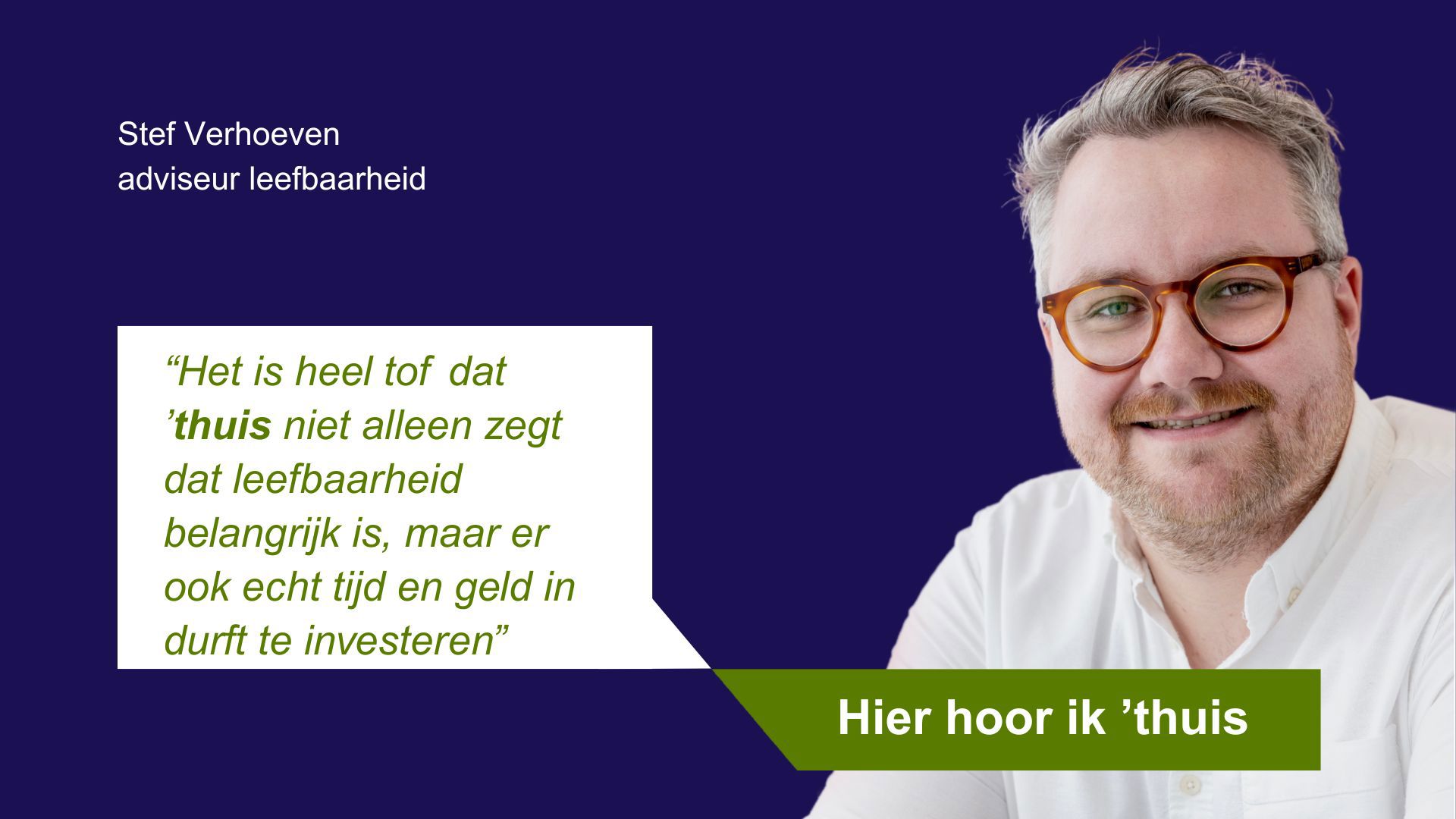 De afgelopen jaren was Stef sociaal projectleider bij ’thuis en stond hij dichtbij bewoners. Met zijn werk verbeterde hij de leefbaarheid van buurten en probeerde hij op allerlei manieren bewoners te betrekken bij projecten zoals sloop-nieuwbouw en renovaties. “Het vroegtijdig betrekken van bewoners en andere belanghebbenden vraagt aan de voorkant om extra inzet, maar levert uiteindelijk altijd een beter plan op. Het zorgt voor meer draagvlak, betere ideeën en tevreden partijen óók bij de bewoners zelf "
