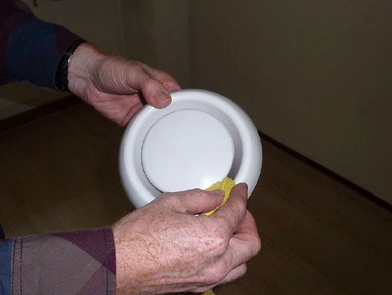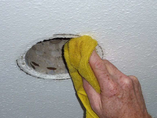 Maak het plafond rondom het ventilatiekanaal schoon met een vochtige doek.