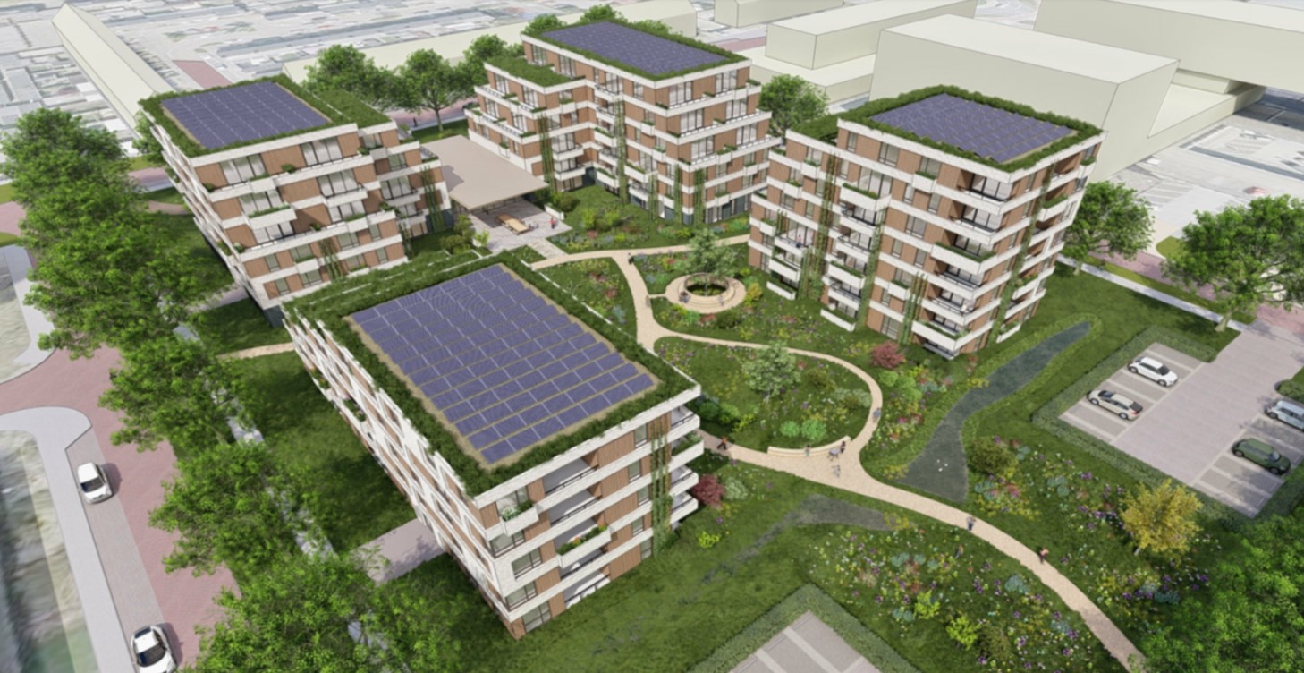 De bouw van de woontorens start in het najaar van 2024. De bouw gaat minimaal 2 jaar duren. We verwachten het op te kunnen leveren in eind 2026 of begin 2027.