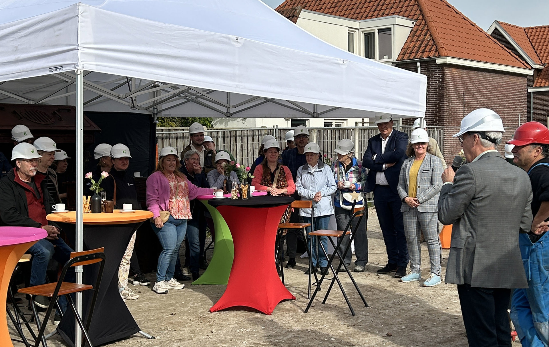 Tijdens de voorbereidingen van dit project hebben we fijn samengewerkt met de buurt en de bewonerscommissie. Een verrassende act waar de bewonerscommissie de eer kregen, zorgde voor een feestelijke sfeer. Samen hebben we geproost op een goede bouw en nagepraat met een hapje en drankje.