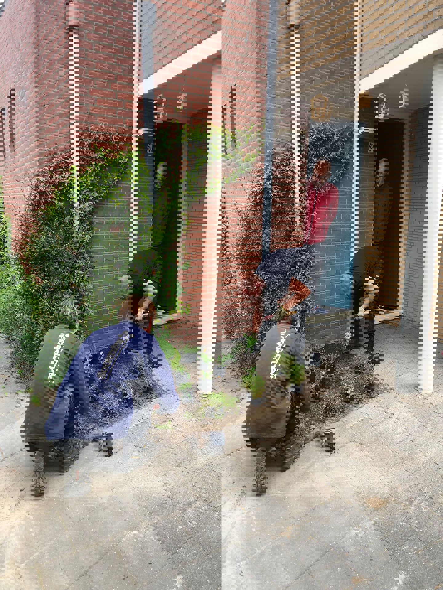 Samen met de hoveniers overleg je welke tegels eruit mogen. Herman en Frans halen de tegels en het zand weg, leggen verse potgrond erin en planten de Eindhovense plantjes terug. Ondertussen leggen ze uit wat ze doen en hoe je je nieuwe tuin kunt onderhouden.