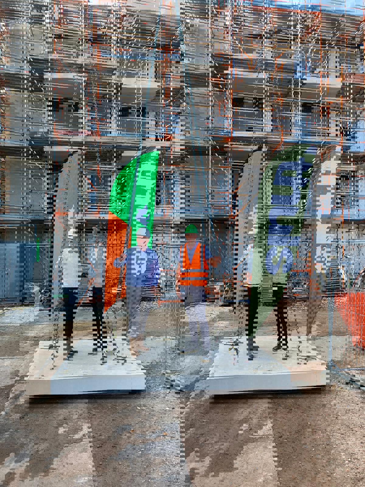 De bouw van de nieuwe Gildebuurt in Eindhoven gaat voorspoedig. Op vrijdag 19 september vierden we samen met BAM Wonen een mooie mijlpaal: het hoogste punt van fase 1A is bereikt! Tijdens een feestelijk moment hesen we de vlag en werden de bouwers in het zonnetje gezet en verwend met een frietje.