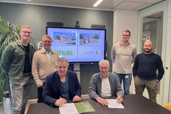 Vorige week hebben we met aannemersbedrijf Van Rijswijck handtekeningen gezet voor de bouw van 12 sociale huurappartementen op Veld 7, Moorland. Het worden duurzame, betaalbare en toekomstbestendige appartementen.