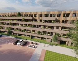 Op de hoek van de Ambachtslaan/Klokkenmaker hebben we 56 duurzame houten appartementen gebouwd.