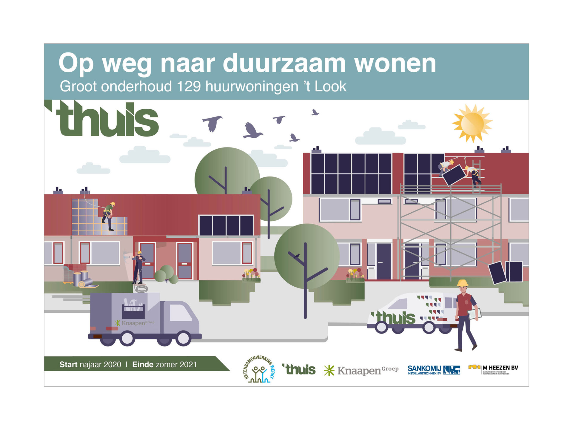 Aannemer KnaapenGroep heeft het werk namens ’thuis uitgevoerd. Dat gebeurde in een zogenoemde ‘ketensamenwerking’. ’thuis, KnaapenGroep, Heezen en Sankomij werken in de uitvoering samen in één projectteam. Door beter samen te werken kan tijd bespaard worden en heeft u minder overlast.